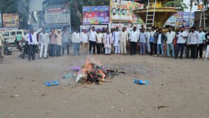 ಮೂಡಲಗಿ: ರಮೇಶ ಕತ್ತಿ ವಾಲ್ಮೀಕಿ ಸಮಾಜದ ಬಗ್ಗೆ ಅವಹೇಳನಕರವಾಗಿ ಮಾತನಾಡಿ ನಿಂದಿಸಿದ್ದಾರೆ ಎಂದು ಆರೋಪಿಸಿ ರಮೇಶ ಕತ್ತಿ ಅವರ ಮೇಲೆ ಜಾತಿ ನಿಂದನೆ ಪ್ರಕರಣ ದಾಖಲಿಸಿ ಬಂಧಿಸಬೇಕು ಎಂದು ಆಗ್ರಹಿಸಿ ಮೂಡಲಗಿ ತಾಲೂಕಿನ ದಲಿತ ಸಂಘಟನೆಗಳ ಒಕ್ಕೂಟ ಹಾಗೂ ಜಾರಕಿಹೊಳಿ ಅಭಿಮಾನಿಗಳು ಪಟ್ಟಣದ ಪ್ರಮುಖ ರಸ್ತೆಗಳಲ್ಲಿ ರಮೇಶ ಕತ್ತಿ ಅಣುಕು ಶವ ಹೊತ್ತು ಮೆರವಣಿಗೆ ಮೂಲಕ ಕಲ್ಮೇಶ್ವರ ವೃತ್ತಕ್ಕೆ ಆಗಮಿಸಿ ಪಟಾಕಿ ಸಿಡಿಸಿ ಕೆಲ ಕಾಲ ರಸ್ತೆ ಬಂದ್ ಮಾಡಿ ಪ್ರತಿಭಟಿಸಿ ಗ್ರೆಡ್ 2 ತಹಶೀಲ್ದಾರ ಶಿವಾನಂದ ಬಬಲಿ ಅವರಿಗೆ ಮನವಿ ಸಲ್ಲಿಸಿದರು.